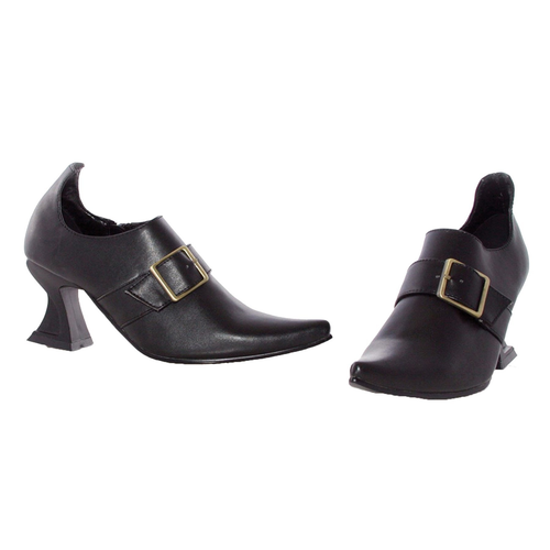 Women's Witch Black Shoes With Buckle Lg : Pointed tow witch shoe with buckle. Medium high heel. Adult large 9-10.